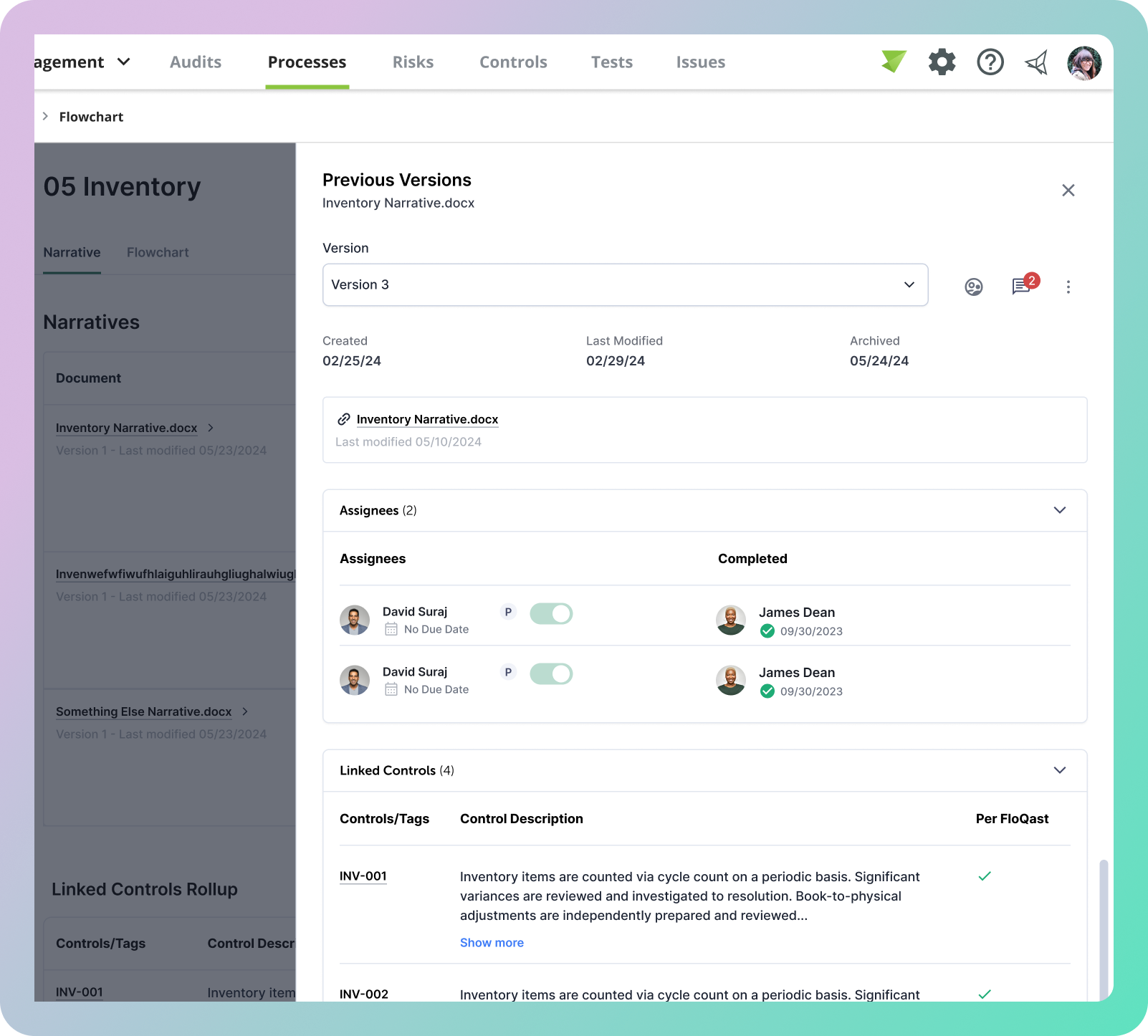 With multiple files now tied to a process, there's an opportunity to surface richer status and coverage signals at the dashboard level — giving compliance teams a clearer at-a-glance view of which processes are fully documented versus those still needing attention.